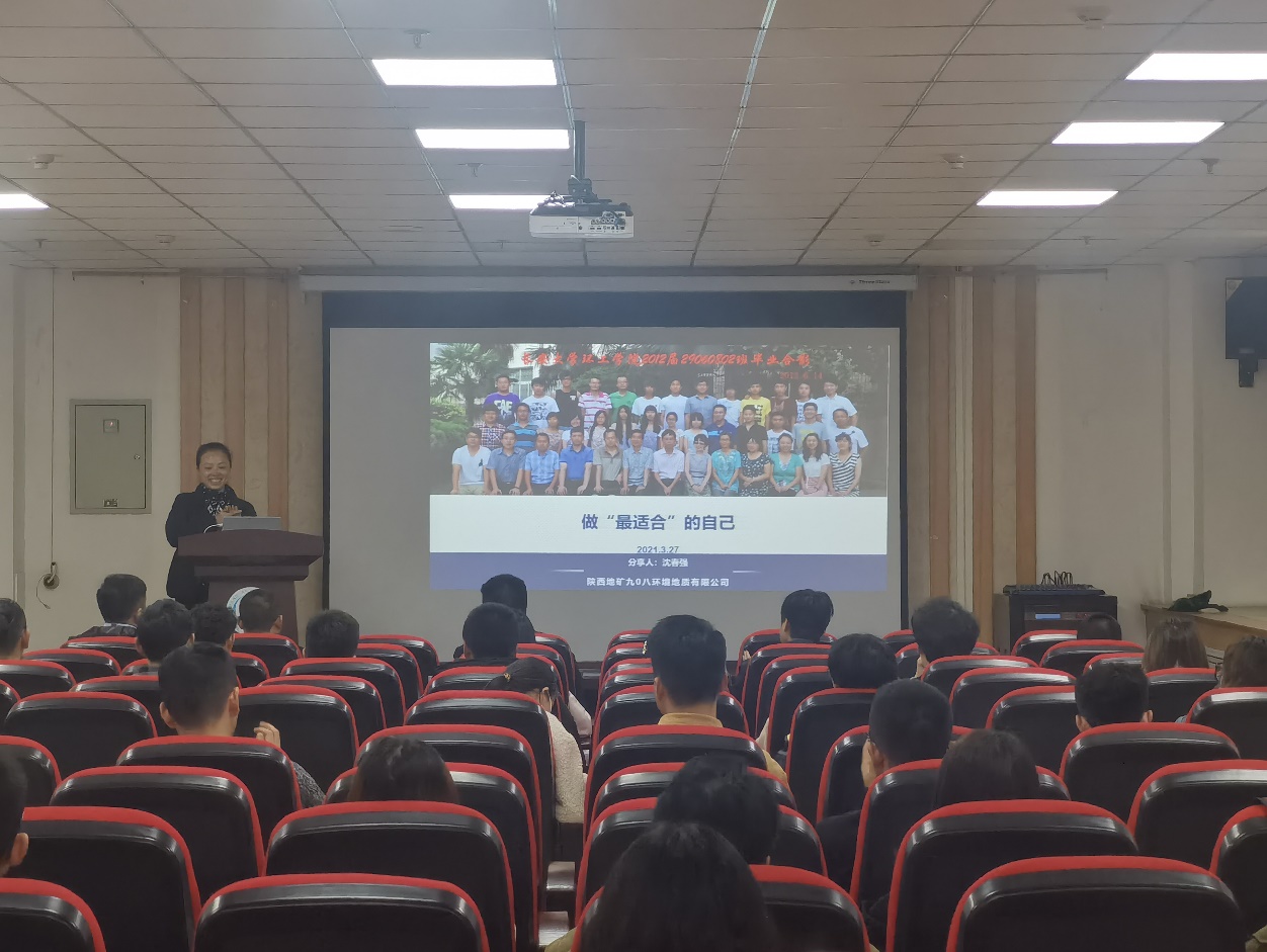 3月27日上午,由澳门网投官方网站承办的以“最适合的自己”为主题的就业指导讲座在地学大厦313顺利举办,目的是为了迎校庆、树典型、促就业。澳门网投官方网站2009届水文与水资源工程校友、陕西地矿九0八环境地质有限公司副总经理沈春强为此次讲座作了报告。会议由学院党委副书记王妍主持,澳门网投官网共计100多名师生参加了此次讲座。