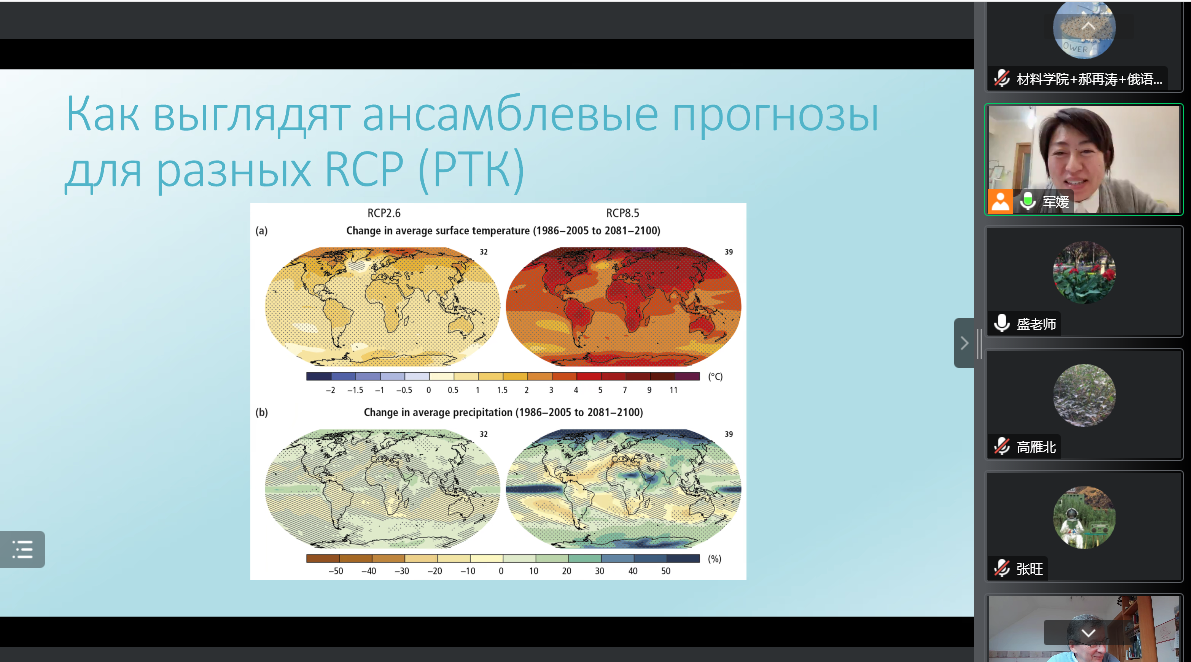 接着,C.C.普茨尼亚科夫教授作了题为“全球气候变化”的讲座,介绍了人类活动在气候变化中充当的角色。气候变暖引起的全球热盐循环变化、人为产生的二氧化碳、米兰科维奇循环等都对全球气候变化产生了较深远的影响。同时他详细介绍了GCM大气环流模型,使用应考虑的因素,以及检验模型准确性的方法。
