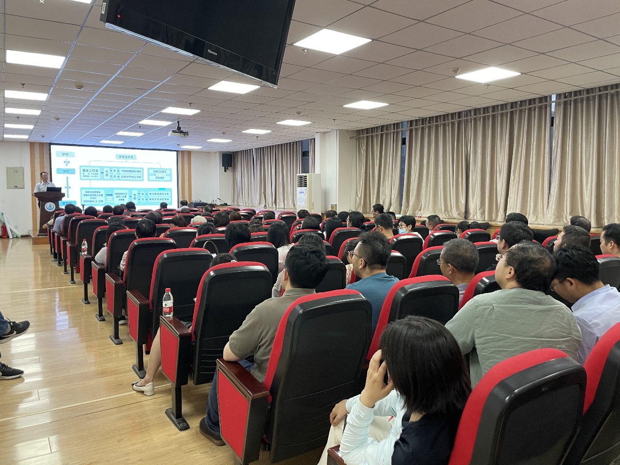 院长白波向全体教职工宣讲了学院2023年度考核办法。他对学院任务分解原则进行了介绍,并明确了不同职称教职工的基本工作量要求。对学院的三级考核体系、绩效考核办法进行了详细的解释与说明,并举例说明了教职工基本工作量考核合格的条件。他指出,学院建议教职工根据研究方向自行组建教学、科研团队,以进一步强化有组织的教学、科研活动,有利于教职工年度基本工作量考核。