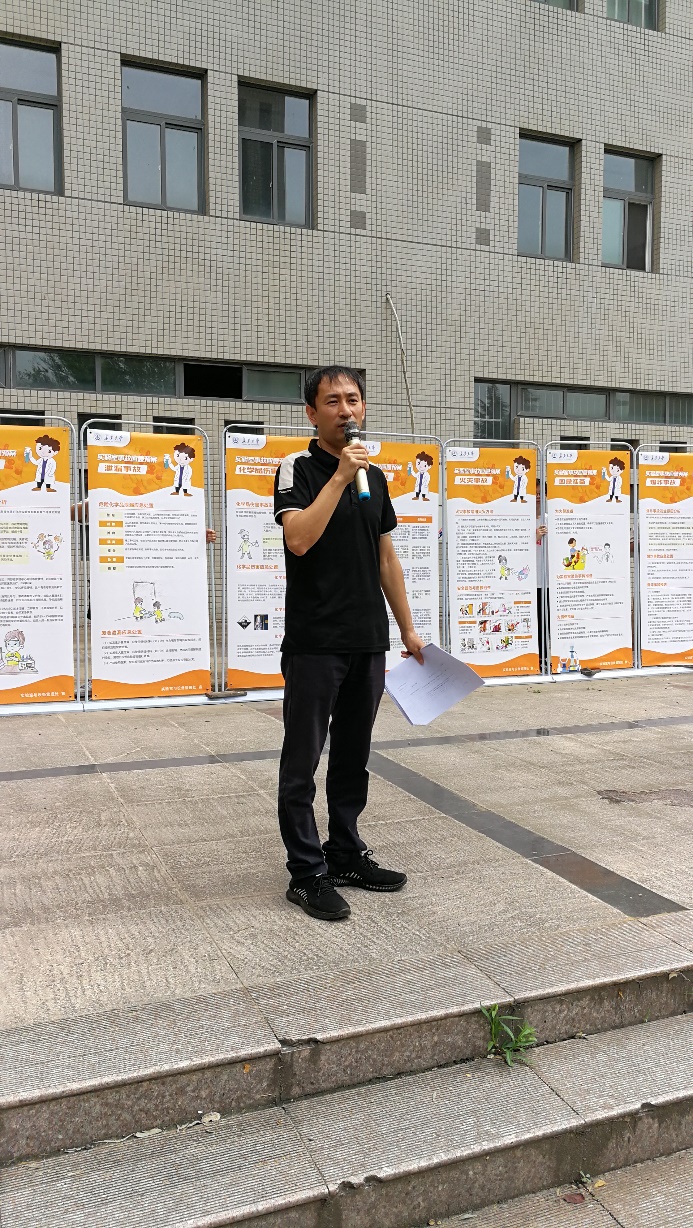 6月19日下午,澳门网投官方网站在渭水校区实验一号楼前举行“澳门网投官方网站澳门网投官方网站2023年废液倾洒应急救援演练”。校实验室与设备管理处副处长张雷、西安安备思软件有限公司总经理刘涛、材料学院、理学院和澳门网投官方网站师生代表共80余人参加了演练。演练由澳门网投官方网站化工实验中心主任陈志红主持,澳门网投官方网站副院长李培月担任现场总指挥,西安安备思软件有限公司总经理刘涛现场解说。