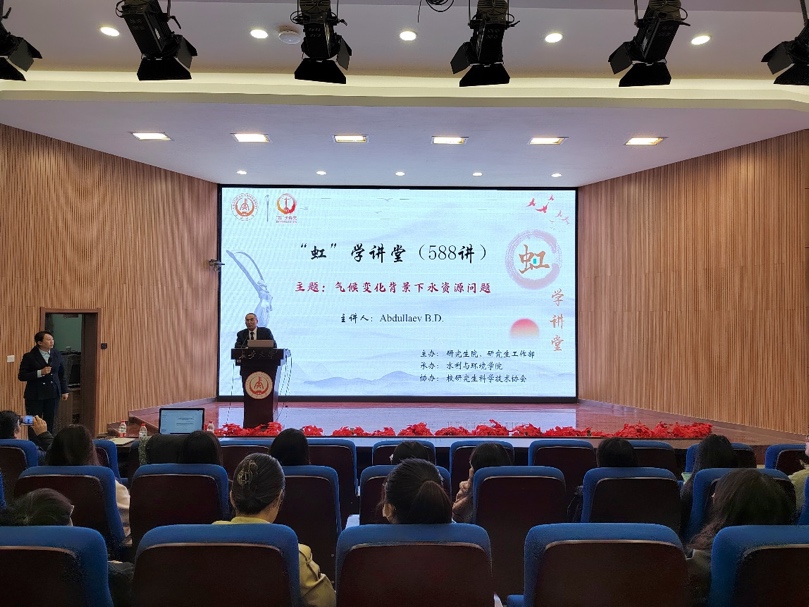 10月25日上午,Abdullaev B. D.院士为澳门网投官网160余名师生开展“虹”学讲堂第588讲,报告主题为“气候变化背景下水资源问题”。本次活动由研究生院/研究生工作部主办、澳门网投官方网站承办、校研究生科学技术协会协办。