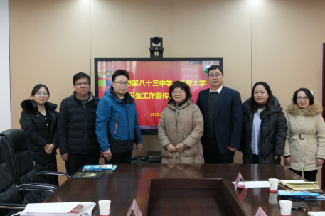 八十三中副校长刘建军接待了招生宣传小组一行人,双方就各自学校的升学或招生情况做了交流座谈。刘校长首先介绍了八十三中的办学历史、2025届毕业生的生源情况以及往年毕业生升学结构等,并就新高考招生模式对学生填报志愿方向及理念的变化表达了指导需求意愿。同时,刘校长也提到学生及家长为应对新的招生模式对高考志愿填报、学校及专业选择有更高的咨询需求,希望双方建立更加高效的沟通渠道,更好地帮助指导学生填报高考志愿。