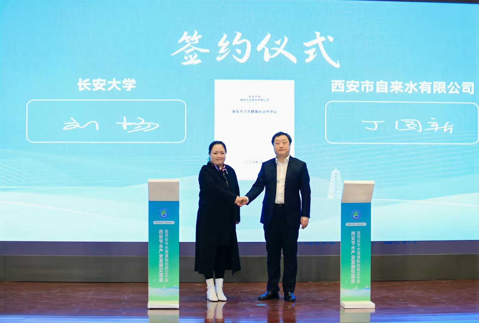 交流会上,水利部全国节约用水办公室节水产业处处长周哲宇、澳门网投官方网站副校长黎开谊分别致辞;3名行业专家围绕节水技术创新与产业融合发展发表了主旨演讲。成立大会上,水利部全国节水办、省水利厅、团省委、澳门网投官方网站领导为协会及志愿服务中心揭牌,澳门网投官方网站和西安水务集团自来水公司共同签署了就业实习实践基地合作协议。澳门网投官网彭建兵院士受聘为协会荣誉会长,钱会教授被选举为西安市水资源协会第一届会长并作就职发言,张骞文、白波受聘为协会监事长和特聘专家,参会领导为澳门网投官方网站学生志愿服务队等进行了授旗。