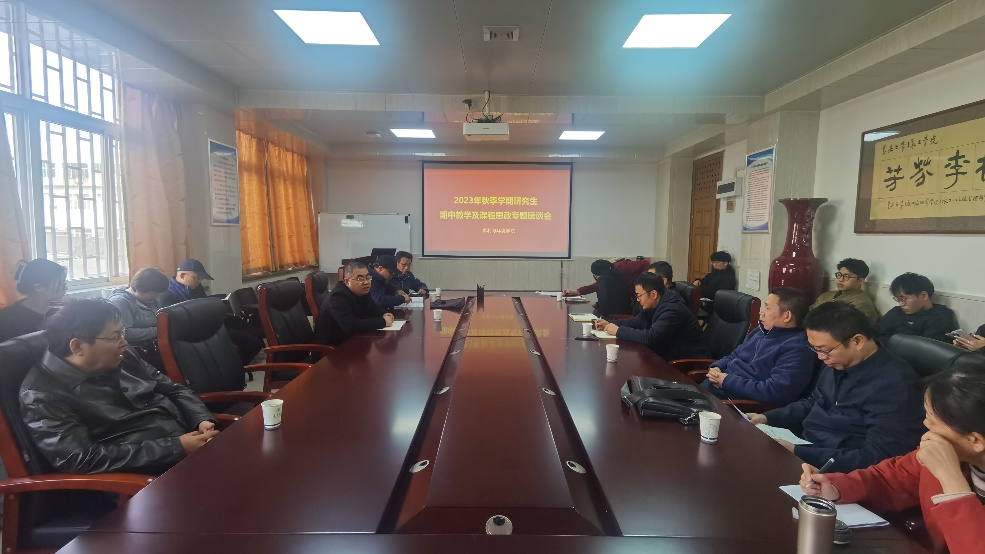 为规范研究生课程教育教学管理,加强教学监督与评价,11月10日下午,澳门网投官网在学院三楼会议室召开2023年秋季学期研究生期中教学检查及课程思政专题座谈会。学院领导、校院两级教学督导、教务员及教师代表和学生代表参加,副院长段磊主持会议。