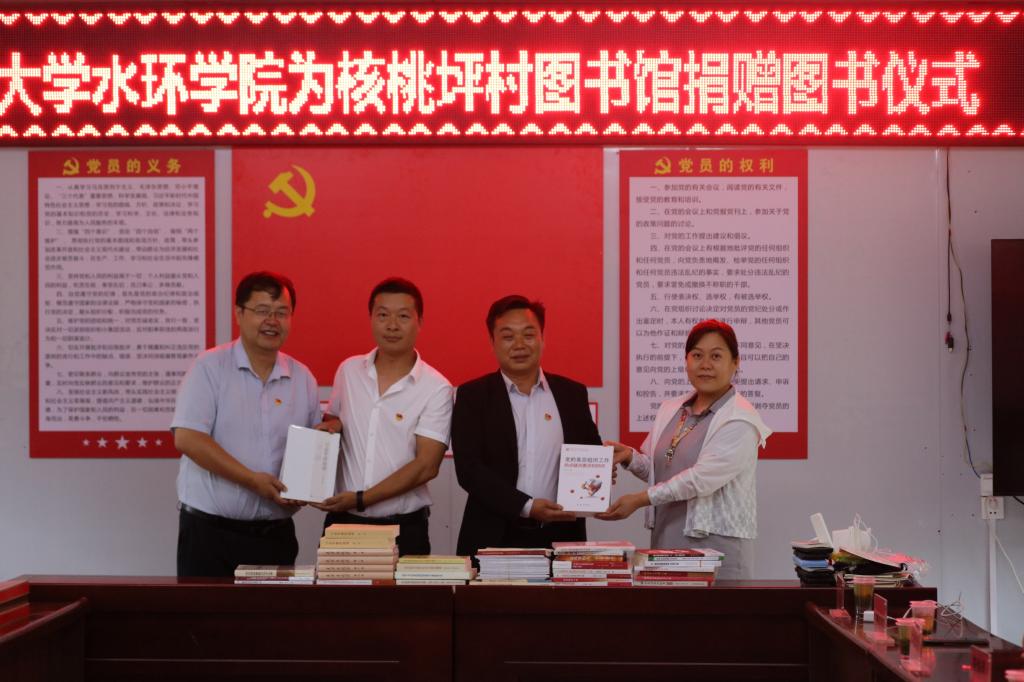 活动第三环节,张骞文和荆琳代表澳门网投官方网站党委向核桃坪村图书馆捐赠党纪学习教育的图书60余套,此次捐赠是学院党委组织的第三次捐赠图书活动,截止目前总计向村里捐赠图书600余套,持续充实村图书馆的图文资料,不断丰富村民文化生活。