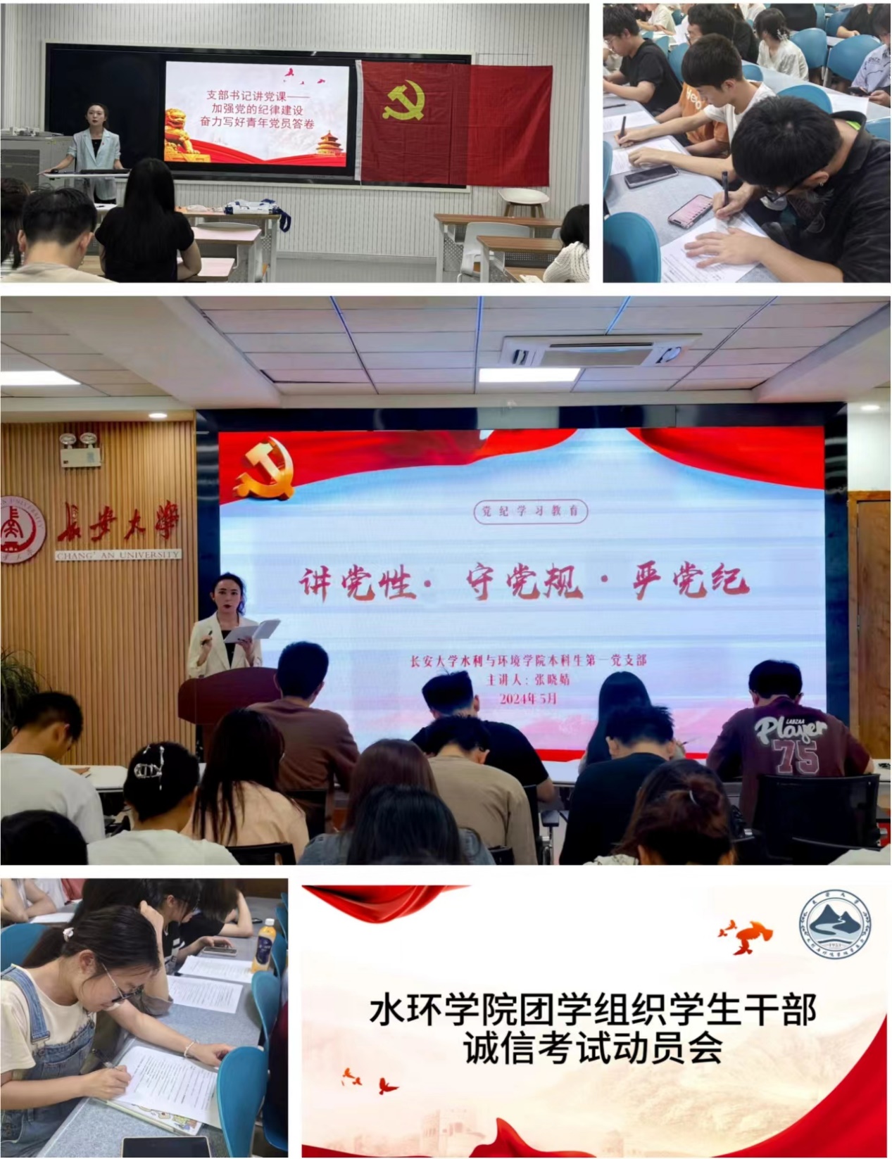 坚持党团合力,树风立范,通过对学生党员开展守纪教育,发挥学生党员模范带头作用,引领各团学组织和学生骨干广泛学习《澳门网投官方网站学生违纪处分规定》等文件,营造良好风气帮助学生将校规校训、学生守则、考勤制度、考试规定等内化于心、外化于行。在考试来临前,通过现场签订考试诚信承诺书使得学生牢固树立责任意识、契约意识,引导水环学子认真诚信考试。